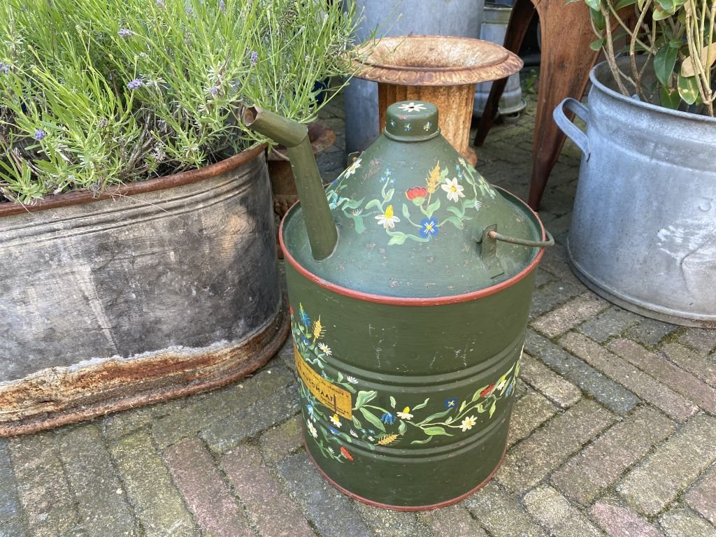 leuke beschilderde zinken / metalen schenkkan echt volkskunst