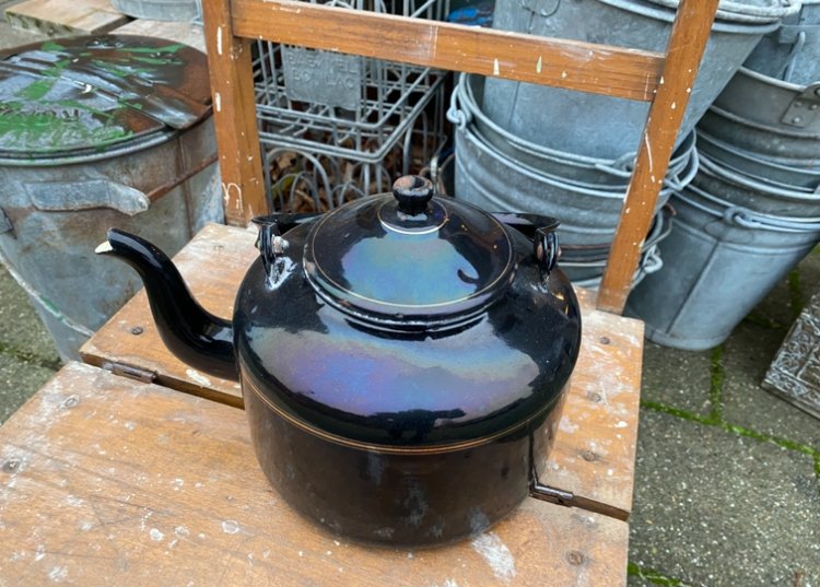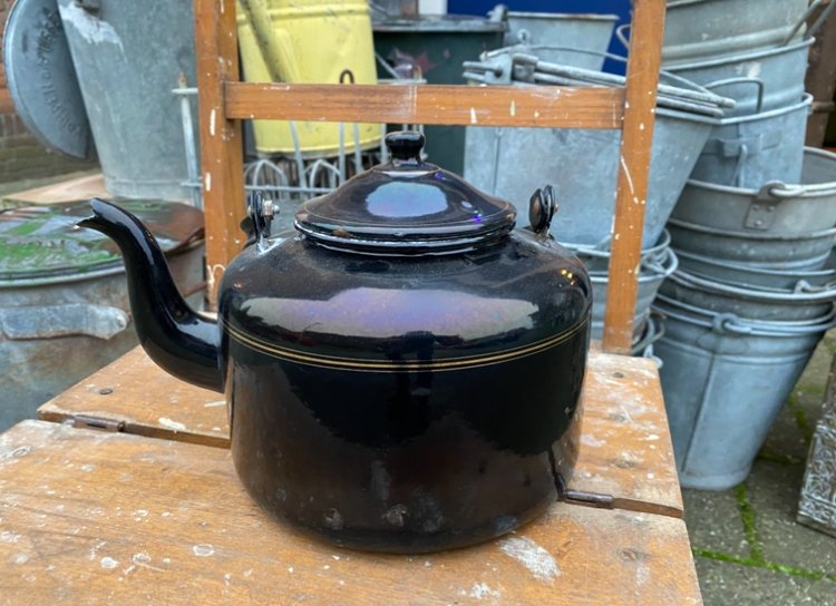 mooie grote zwarte ketel. leuk voor de verzamelaar of decoratie.