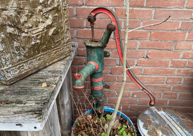 gietijzeren handpomp. leuke decoratie voor in de tuin enz