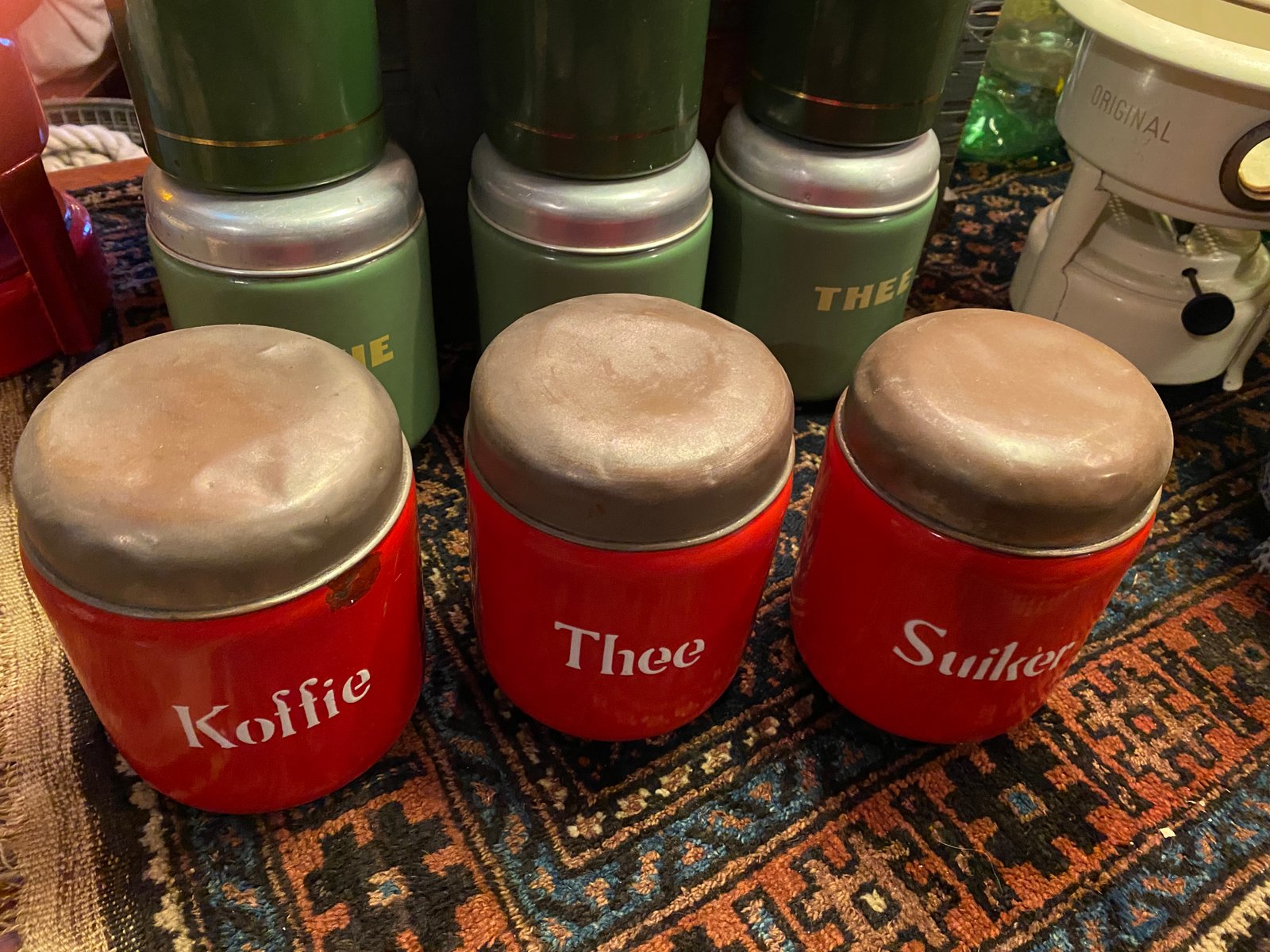 rood emaille koffie thee suiker voorraad bussen